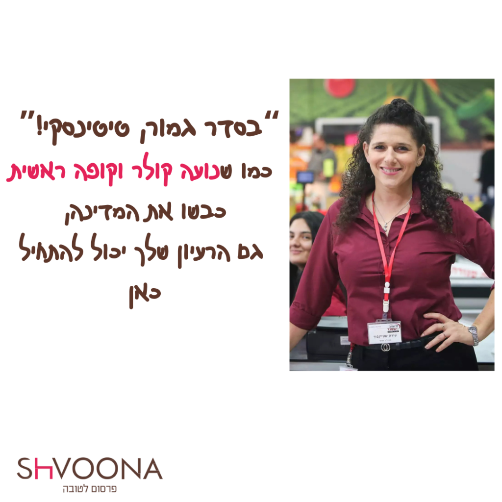 בסדר גמור, טיטינסקי! בדיוק כמו שנועה קולר וקופה ראשית כבשו את המדינה, גם הרעיון שלך יכול להתחיל כאן